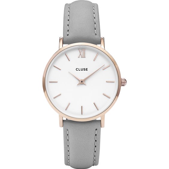 Reloj de cuarzo, solo tiempo con caja de 34 mm de diámetro en metal color rosa, vidrio mineral y correa de piel