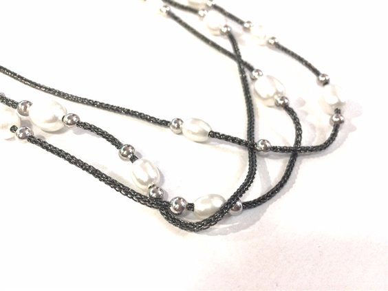 Collar de Lurex bruñido y blancos perlas cultivadas con detalles en plata.