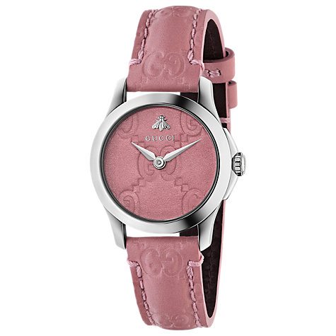 Caja de acero inoxidable plateado con correa de piel rosa. Bisel fijo de acero inoxidable. Esfera rosa con manos de color plateado. Tipo de marcado: analógico. Movimiento de cuarzo Cristal de zafiro resistente a los arañazos. Caja sólida de nuevo. Tamaño de la caja: 27 mm. Forma de la caja redonda. Resistente al agua hasta 50 metros / 165 pies. Funciones: horas, minutos. Reloj de estilo de noche
