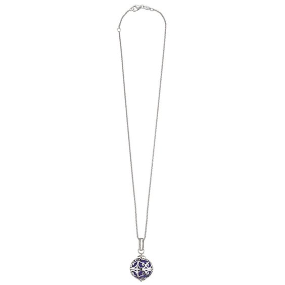 Pequeñas alas de ángel, osos de peluche blandos de panza redonda, corazones para el verdadero romántico, palomas están a punto de emprender el vuelo, animales suaves y encantos como mariquitas, mariposas, delfines ... y, por supuesto, la llamada-Angels, cuyo sonido se imprime alma y da la calma y serenità._Sono sólo algunos de los protagonistas de las joyas Herzengel, la línea Engelsrufer diseñado para pequeñas y compuesto por joyas extremadamente fino y delicati.Proprio como las de los grandes, el bebé de las colecciones del norte de Europa son marcas abigarrado, hecho de plata preciosa plateado rodio (que evita el ennegrecimiento y siempre mantiene brillante), con atención a los detalles más pequeños, con detalles esmaltados de colores brillantes y vivos. El collar que vamos a presentar es una cadena de plata rodio de 40 cm con una pelota de juego lila.