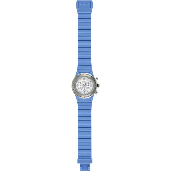 Hip Hop de los hombres del cronógrafo Colección De Chrono. Reloj con caja de 39 mm de tamaño, de plata Bolas Con Luminoso, segundos bola de color de azul y Fechadores luz. Modelo Con correa de silicona de color azul claro con Scala Tachimetrica En Negro Bisel de plata satinado. Este reloj tiene Pe811-6 Movimiento Chrono y la resistencia del All'Acqua 5 Atm.