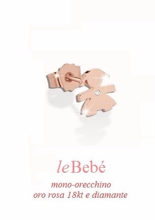 Esto mono pendiente de la colleción Briciole, representa una niña en oro rosa 18 kt conpequeño diamante 0,003 ct. Muy bonito combinado con el mono pendiente niño.
