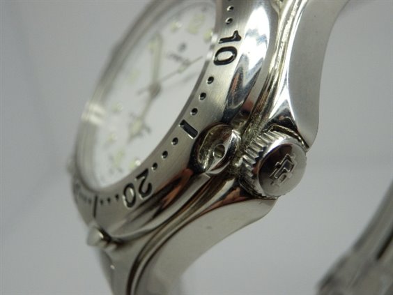 SUB reloj con movimiento de cuarzo eta 955 112, marque con el punto índices y luminiscente, ventana de fecha aplicado en 3 .Ghiera unidireccional serrata corona tornillo giratorio como el acero .Bracciale inferior con ataque integrado en la caja y el cierre de la bandeja con seguro.