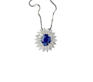 Gargantilla Lunatic Mujer en oro blanco con zafiro central con diamantes de contorno ct.0.30. Calidad VS color G.