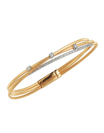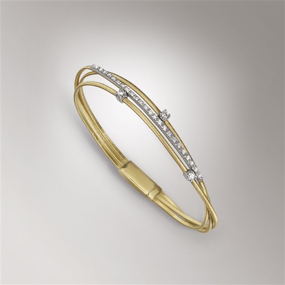 Pulsera de 3 hilos en oro amarillo y diamantes. procesamiento de la mano con la técnica de secuencia de la guitarra.