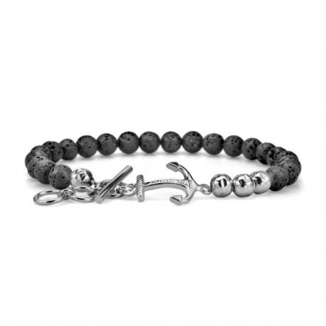 Pulsera de hombre Sterling Maria Cristina. Granos de lava de 6 mm de diámetro. Longitud 19cm 3cm.