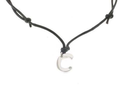 Inicial en acero con cordón encerado, letras disponibles B, D, H, M, N, Q, R, S, T, V, Z.