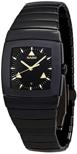 RADO SINTRA COLLECTION EN EFECTIVO NEGRO CERÁMICA NEGRO DIAL CON ÍNDICES DE ORO FECHA 6 HORAS IMPERMEABLE 3 ATM NEGRO PULSERA DE CERÁMICA.