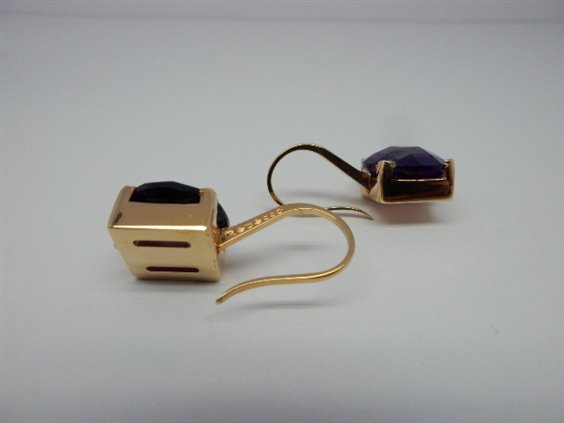 Pendientes de oro de Rose plateado bronce y cuarzo hidrotermal púrpura, cierre para enganchar longitud de 2,5 cm