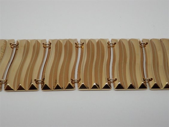 Pulsera de color bronce ondas de oro amarillo, cada enlace se compone de tres elementos, con cerradura marcas cm REBECCA.Lungo 18:00 y 3:00 cm de alto