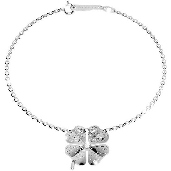 Pulsera de plata con trébol negro trabajado