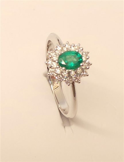 Anillo Salvini en oro blanco pulido con esmeralda ovalada (centro 0.45) - sobre dos diamantes (quilates de 0.31 G / H totales). La medida 13 se puede editar. Dimensiones del molde: 9.07 mm x 9.23 mm. - h 6,50 mm. Garantía y certificado de autenticidad incluido.