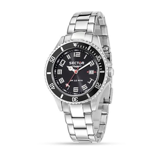 Reloj para hombres, Movimiento de cuarzo, Caja de acero y pulsera, Juego de destornilladores, Diámetro de caja de 39 mm, Impermeable a 10 m. (100 m), esfera negra