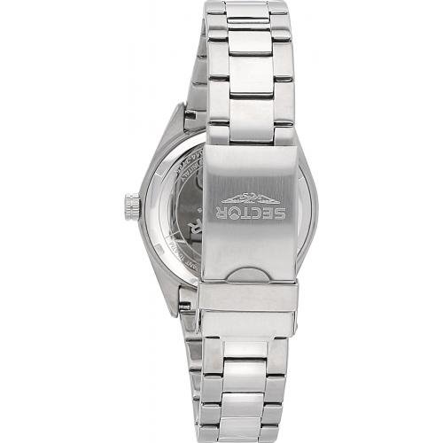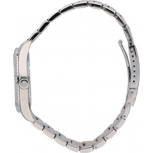 Reloj para hombre en acero con pantalla analógica, esfera plateada con números y agujas blancas. caja de acero moleteada