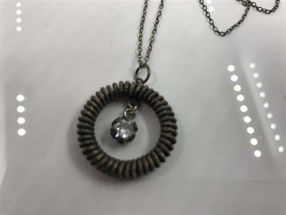 Cm.45 cuello redondo con colgante redondo cm.2 y encanto con perla color crema