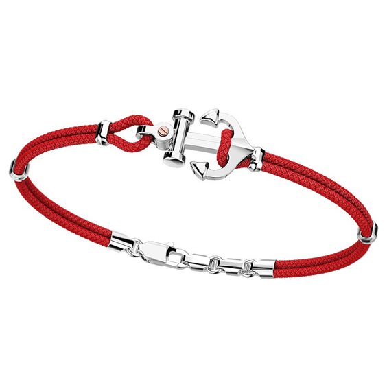 Pulsera para hombre de Zancan hecha con 0.02 Gr Gold 18Kt 7.00 Gr Silver, Kevlar. Joya Con Detalles De Rojo Y Con Asunto En Forma De Ancla. Joya de medición estándar de 21 cm con corchete de langosta.