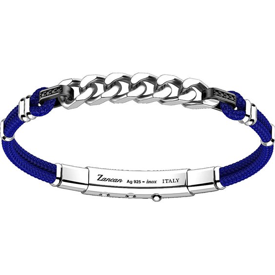 Pulsera Zancan para hombre en plata 925 y tejido azul con cierre de acero ajustable. Hecho en italia