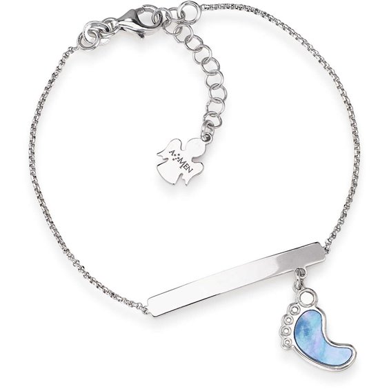 Amen Ladies Bracelet de la collection de coeur de mère. Bracelet En Argent 925 De Couleur Rhodium Avec Nacre Bleue Longueur Du Bijou De 16 2Cm Et Mesure Centrale 3X2Hcm. possibilité de gravure gratuite