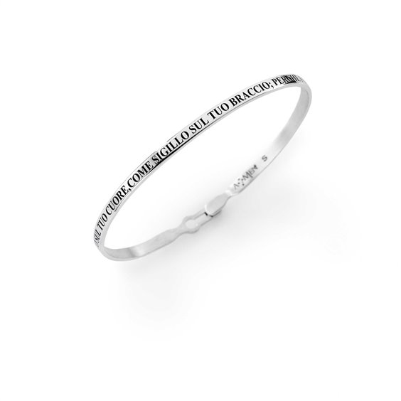 Bracelet rigide en argent 925 / °°° avec la phrase 'Mettez-moi comme un sceau sur votre coeur, comme un sceau sur votre bras, car fort comme la mort est l'amour' (Citant Cantico Dei Cantici), taille S (diamètre approximatif de 6 cm)