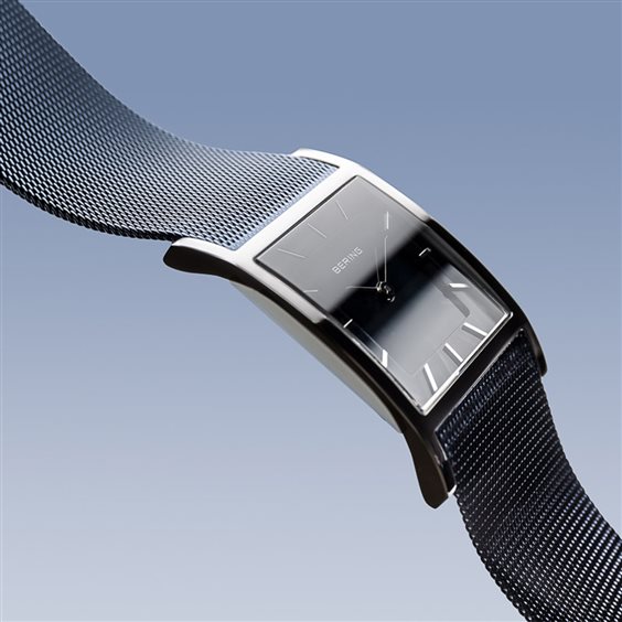 Montre femme avec boîtier en acier inoxydable, diamètre mm.26, cadran bleu, verre saphir. Bracelet tricoté Milan avec fermeture de sécurité, imperméable 5 atm. Garantie de 3 ans