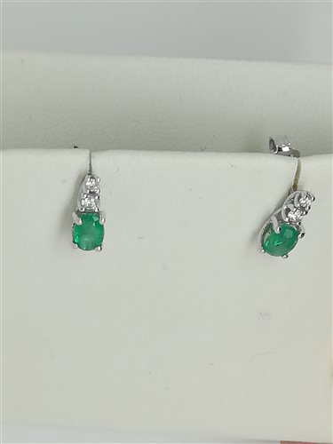 Boucle d'oreille avec émeraude ct 0.65 et diamants ct 0.09 Si couleur G