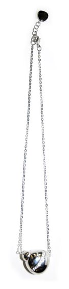 Collier en acier, pendentif rollò mesh, en forme de cœur en forme de dôme avec une bande de cristaux Swarovski, longueur de chaîne maximale 46 cm