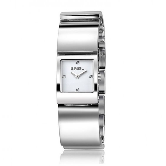 Horloge carrée, mouvement à quartz, cadran blanc à cristaux blancs à 12h, 3h, 6h et 9h, verre minéral, bracelet en tôle d'acier, WR 3 ATM.