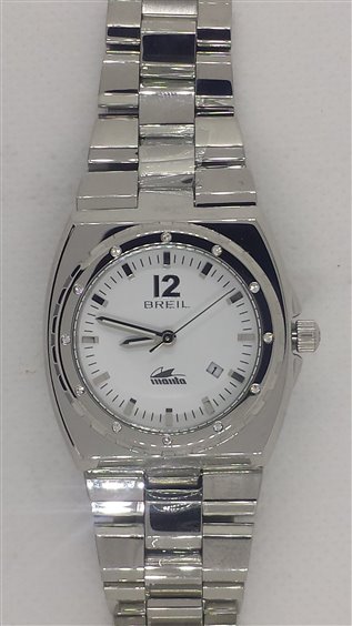 Mouvement à quartz Miyota acier 2015._Cassa 31 mm._Quadrante Blanc avec Swarovski._Quadrante blu._Sfere avec luminous._Datario._Vetro minerale._W.R. 10 atm._Bracciale en acciaio._Chiusura plongeur avec fermoir de sécurité.