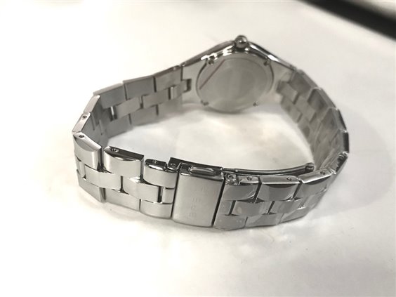 Montre Breil avec lunette usinée et index zircons. Boîtier arrière avec 4 vis et couronne de pression, fermeture déployante avec boutons latéraux.