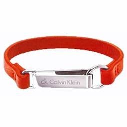BRACELET CALVIN KLEIN EN CUIR ACIER ET ORANGE, TAILLE L POUR 19.5 CM