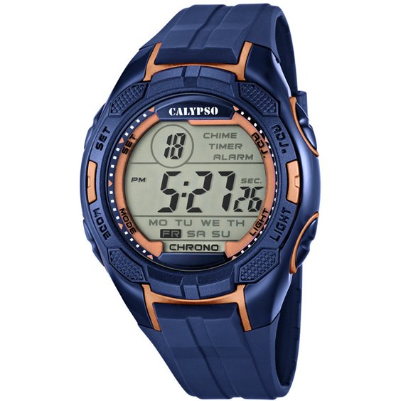 Calypso numérique Montre Homme de la collection numérique pour l'homme. Avec le modèle de Diamètre du boîtier 47 mm, cadran avec affichage numérique et bracelet en caoutchouc. La résistance à l'eau est de 10 atmosphères. GARANTIE DE LA BOÎTE ORIGINALE CALYPSO.