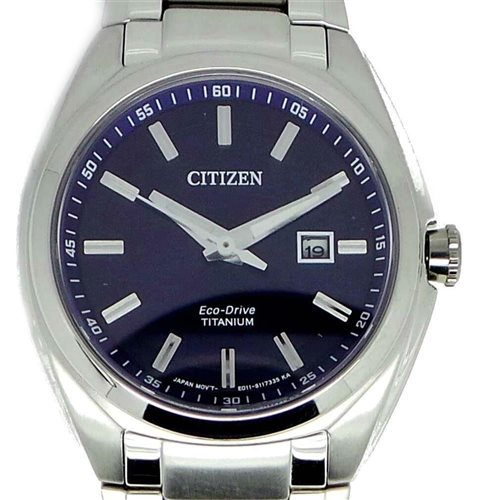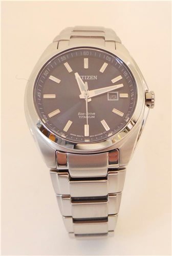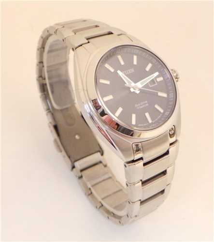 Heure seulement avec l'argent en Super-titane (5 fois résistant que le titane normale 40% plus léger que l'acier) poli et satiné, revisser. Mouvement à quartz Eco-Drive avec charge légère avec réserve de marche de 8 mois