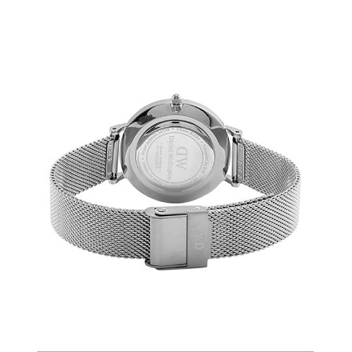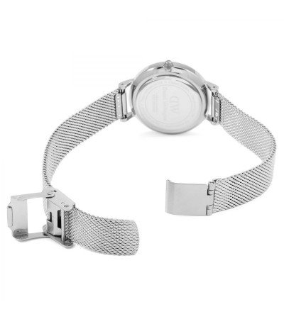 Ladies Only Time Watch par Daniel Wellington De la collection Classic Petite. Modèle avec boîtier en acier de diamètre 28 mm et épaisseur de 6 mm et cadran blanc avec bord argenté. La sangle est interchangeable en mesh Mesh Silver E de 12Mm de largeur. Montre avec mouvement à quartz japonais et résistance à l'eau de 3 atm.