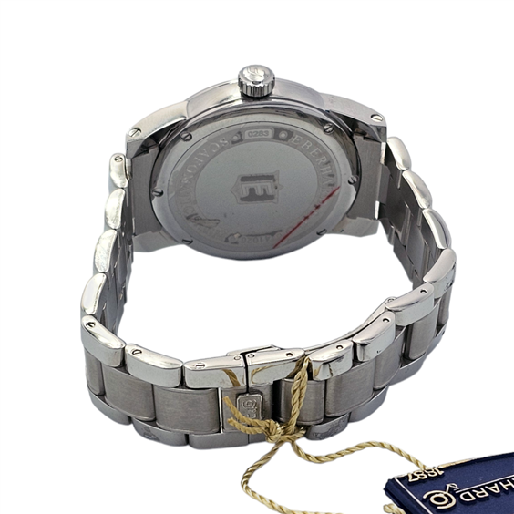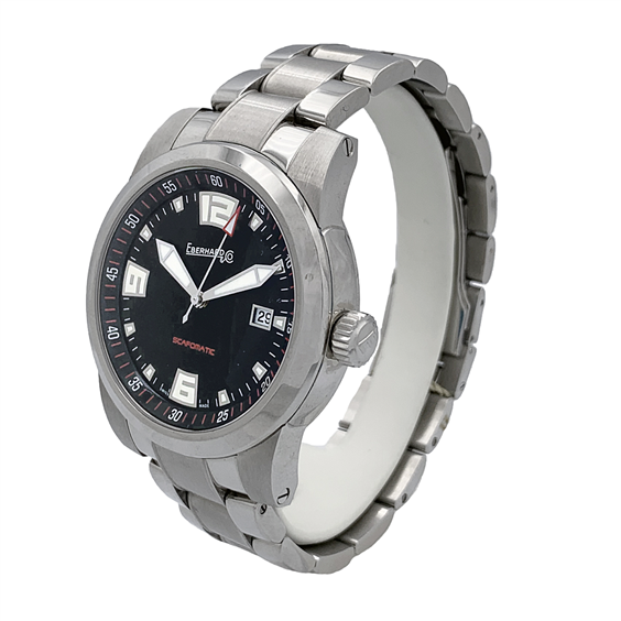 Horloge avec mouvement automatique, cristal saphir, cadran noir, couronne vissée, fond fermé avec 6 vis, date de 3.