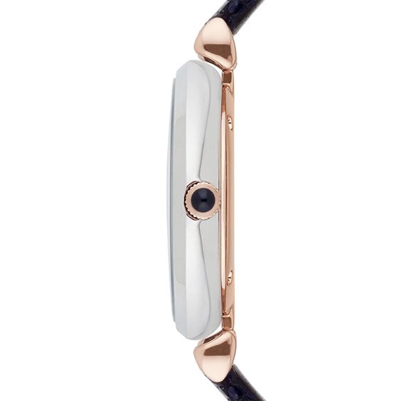 Montre en acier, diamètre mm.32, mouvement à quartz, verre minéral, cadran en nacre avec cristaux, bracelet en cuir avec fermeture ardillon, étanche 3 atm.