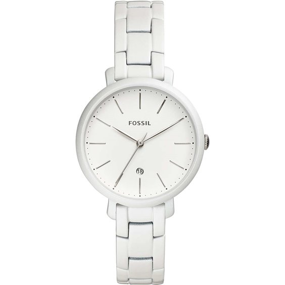 Regardez seulement le temps pour les femmes par Fossil De la collection Jacqueline. Modèle avec boîtier rond en acier inoxydable de couleur blanche avec finition brillante. Boîtier De Diamètre De 36 Mm Et Épais De 7 Mm. Bague en acier inoxydable de couleur blanche et finition brillante. Le cadran est de couleur blanche avec verre transparent. Couleur blanche de bracelet d'acier inoxydable avec la finition brillante et l'agrafe de déploiement. La distance de l'Anse est de 14 Mm. Montre avec 3 mouvement de quartz sphère et date et résistance à l'eau de 3 atm.