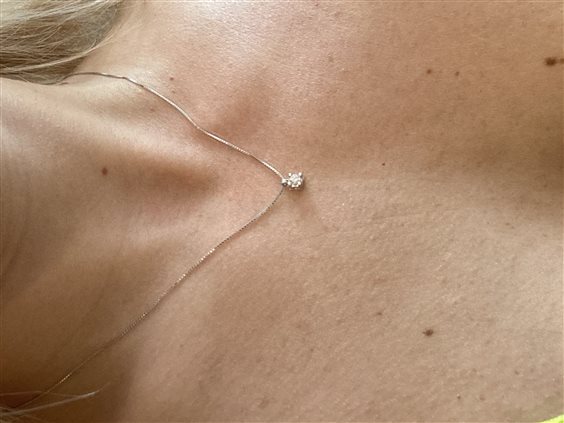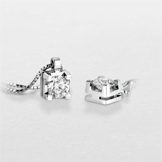 Point lumineux Giorgio Visconti en or blanc 750%, avec un diamant taillé en brillant, 0,16 centième de couleur carat G, sélectionné, pureté VS, modèle de chaîne vénitienne, longueur de chaîne 45-50 cm.