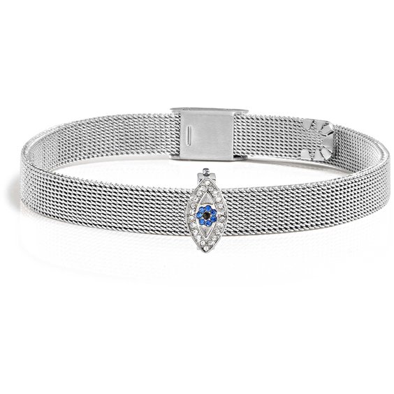 Bracelet en maille en acier avec cristaux. Décoré avec l'œil du diable.