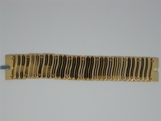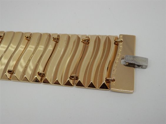 Bracelet couleur bronze vagues d'or jaune, chaque maillon est composé de trois éléments, avec des marques REBECCA.Lungo verrouillables cm 18:00 et 3:00 cm de haut