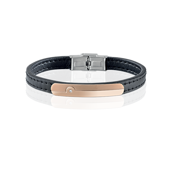 Bracelet pour homme en cuir avec plaque en acier rose; longueur 21 cm personnalisable sur demande