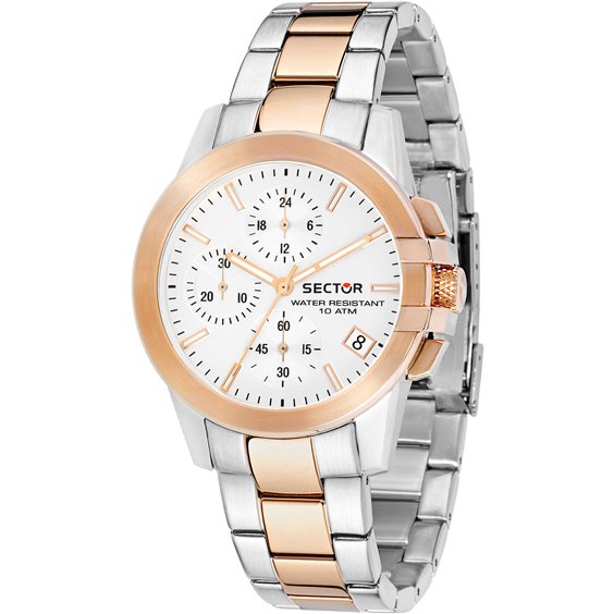 BAGUE FEMME CHRONO EN COLLECTION QUARTZ 480 AVEC CHRONOGRAPHE ET MOUVEMENT VR33A14 CHR 6H DATE 4H AIG.1. LE CAS EN ARGENT MAT TAILLE 36X44MM. LES FINITIONS QUADRANTES D'ARGENT SONT EN ACIER POLI ET SATINÉ ET ÉQUIPÉES D'UN TRAITEMENT EN VERRE MINÉRAL AU ZAFFIRO. BRACELET EN METAL ET EN OR ROSE PVD AVEC CLAPETS DE FERMETURE. RÉSISTANT À L'EAU JUSQU'À 10 ATM.