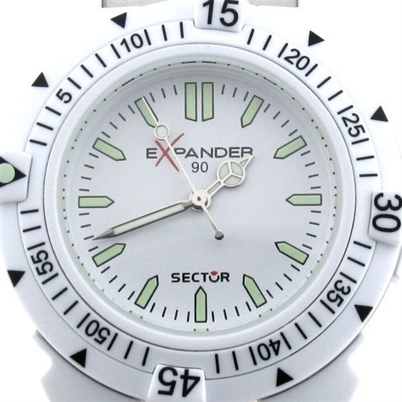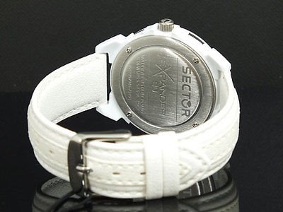 Montre Sector, boîtier en technorésine en verre minéral blanc avec lunette tournante unidirectionnelle. bracelet blanc en tissu technique et cuir avec fermeture à boucle.