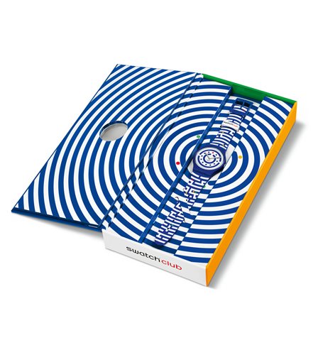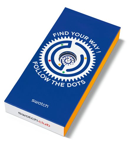 SUOZ279 FOLLOW THE DOTS - Swatch Club Special 2018 avec emballage spécial. Il contient 1 code valide pour renouveler l'adhésion au Club Swatch ou pour une nouvelle inscription.
