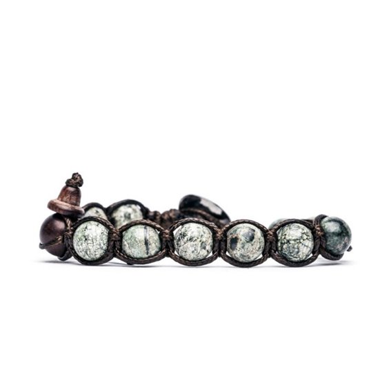 BHS900-104Tamashii Traditional DIASPRO ZEBRATO Le diaspro zebra est l'une des pierres les plus populaires depuis les temps anciens. Dans les écrits indiens, nous constatons souvent qu'il a été offert dans des rites propitiatoires et qu'il s'agissait de protéger et d'accompagner l'individu dans sa révélation personnelle. pour protéger ceux qui le portent dans les défis, en les aidant à atteindre leurs objectifs avec la vitalité, la sérénité et la rectitude.Unisex et la taille unique (le bracelet est prédisposé à s'adapter à tout diamètre du poignet).