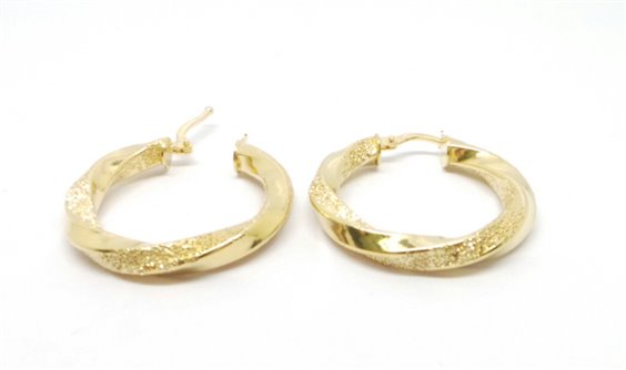 Boucles d'oreilles en forme de cercle torsadé demi-brillant et demi-satiné avec broche et patte de boutonnage. épaisseur du tube 3 mm diamètre extérieur 25 mm certificat de garantie