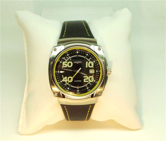ORLOGIO SEULEMENT LE TEMPS DES GANTS DE VERRE DE VERRE DE TONNEUSE ET DES LUMIÈRES DE LA DEUXIÈME COULEUR JAUNE, BOÎTIER QUADRÉ AVEC L'ÉLÉMENT ROTATIF. CEINTURE EN CUIR NOIRE AVEC IMPLANTATION GIALLE. ACIER SUB 100MT LIGHT mais ROBUSTISHOUS.