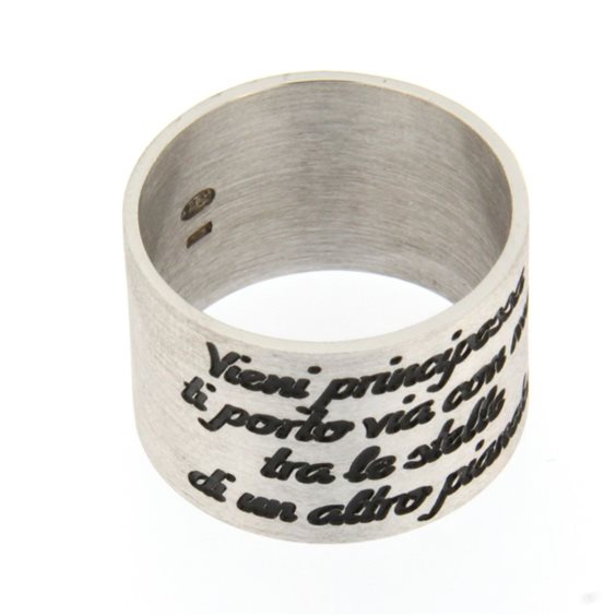 Anneau de bande en argent 925 °°° satin avec la phrase gravée «Viens princesse vous avec moi parmi les étoiles d'une autre planète." Possibilité de personnaliser la phrase en entrant un texte au maximum 150 lettres. Délais de traitement pour une éventuelle personnalisation:. 8 jours ouvrables Ce modèle offre la possibilité de réaliser en blanc, or plaqué argent, rose ou noircies, toutes les tailles sont disponibles sur demande.