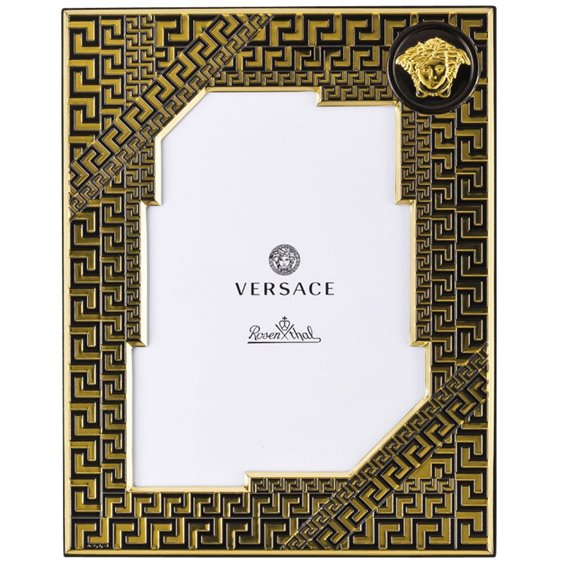 Une collection limitée de cadres en or et en argent enrichit la variété de la sélection de cadeaux. Des formes géométriques claires sont ornées d'imitations emblématiques de Versace, comme la touche grecque et la tête de Méduse qui introduit des métaux colorés.