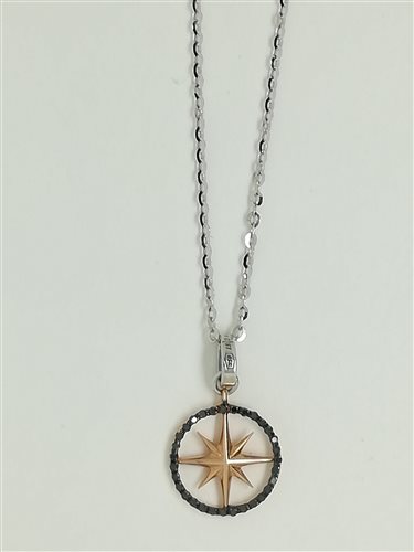 Collier pour homme en or blanc avec rose des vents en or jaune et diamants noir ct 0.16