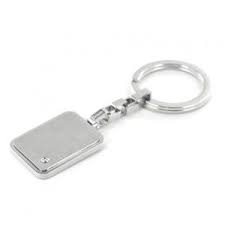 Porte-clés pour homme en acier 316L et saphirs blancs. Porte-clés en acier médical 316L poli et blanc satiné.